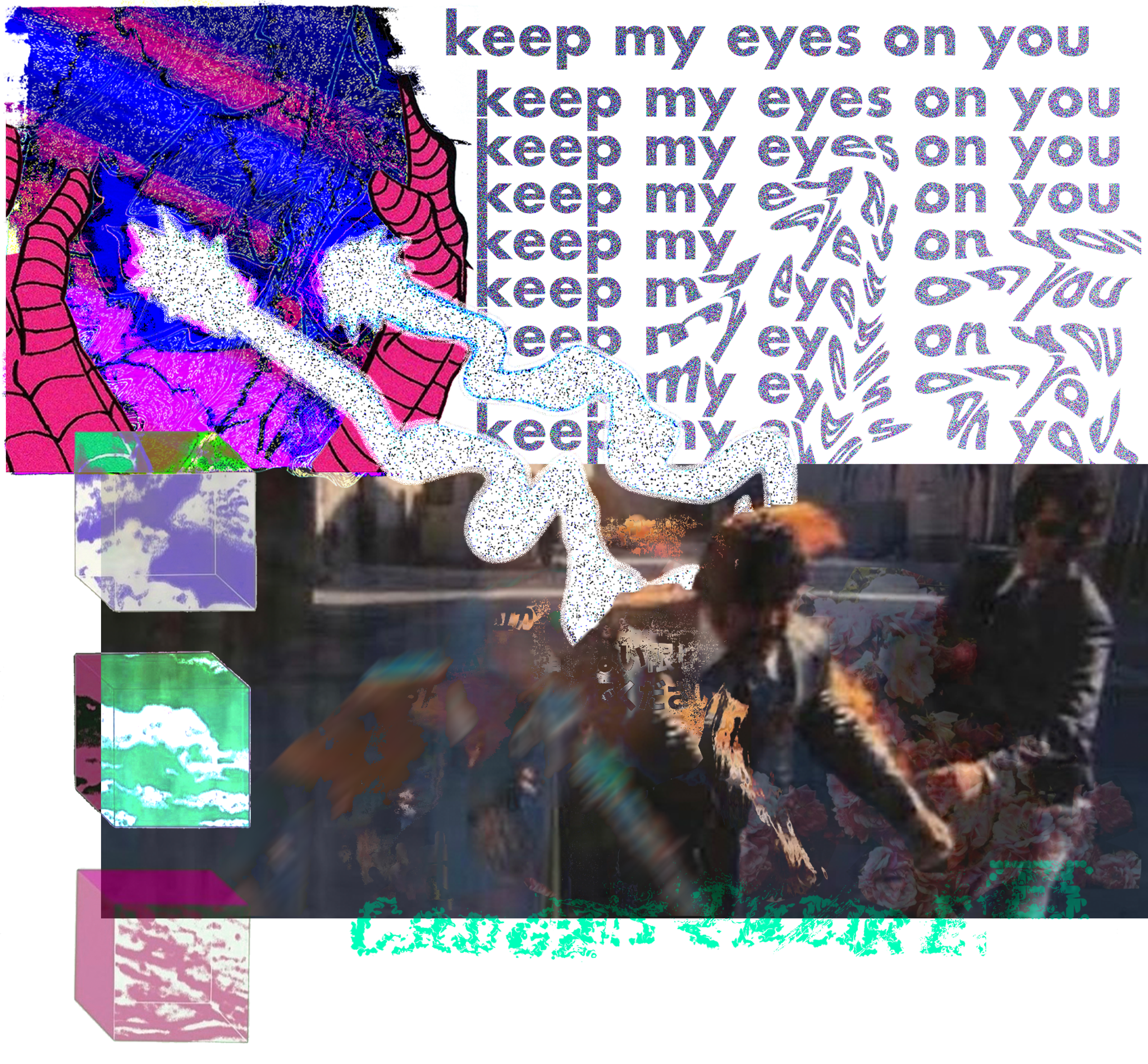 THE VISUAL MOTIFS AND AESTHETICS OF THE NESB ARTISTRY VIDEO EDITING STYLE INVOKES SIMILAR ELEMENTS AS THE GRAPHIC DESIGN. THIS IS BOTH IN REGARDS TO THE LAYERING OF DIFFERENT COMPOSITIONS; FORMATTING SEPARATE SHOTS THROUGH A MANNER OF JUXTAPOSING SCENES WITHIN ONE ANOTHER, AS WELL AS THE SATURATED DISTORTION OF TEXTURES AND COLORFUL OVERLAYS, MIXING INTENTIONALLY GRAINY FIDELITY (CAPTURED ON A SONY HANDYCAM) WITH A DEEPLY ENRICHED TEXTURAL AND COLORFUL SURFACE OF DISTORTION AND EXPERIMENTAL EFFECTS (INCLUDING DATAMOSHING, MASKING, DATATRACKING, ETC.)